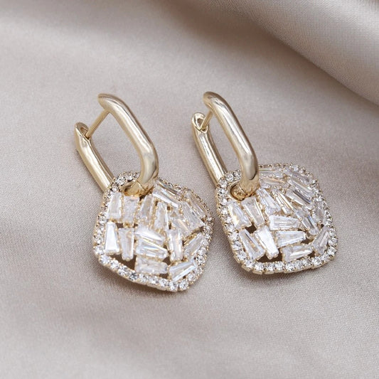 Boucles d'oreilles Zircons géométriques, bijou en alliage plaqué or 585 (14 carats) et en cristal