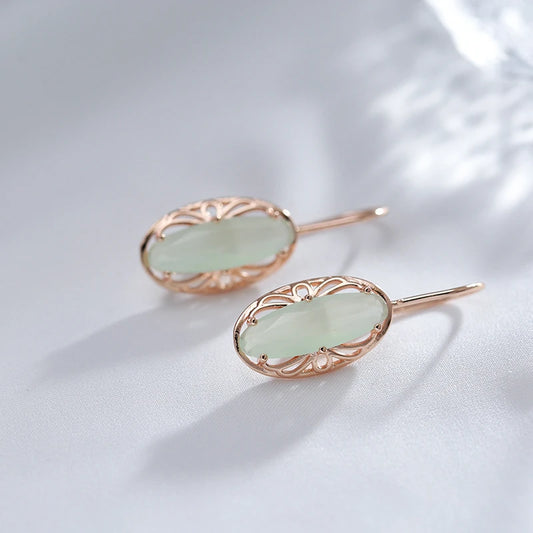 Boucles d'oreilles avec zircons vert clair et blancs, bijou en alliage plaqué or 585 (14 carats) et en zircons naturels