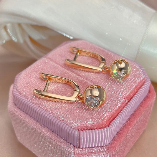 Boucles d'oreilles Boules avec Zircon blanc, bijou en plaqué or rose