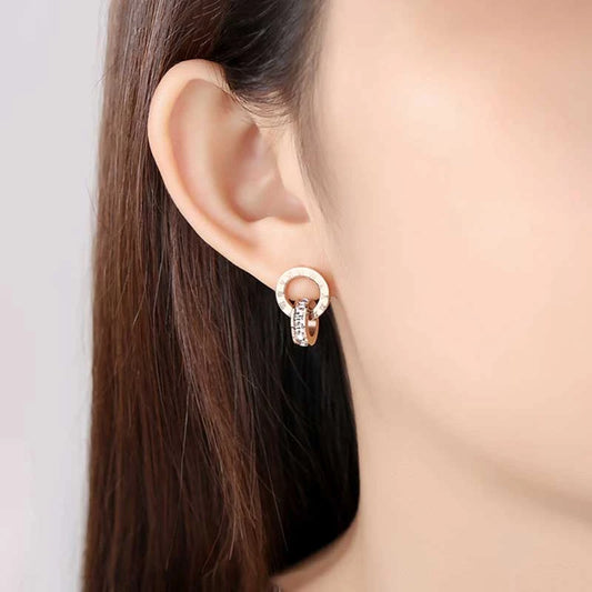 Boucles d'oreilles avec chiffres romains et zircons, bijou en acier inoxydable doré