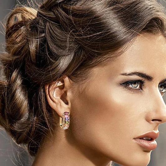 Boucles d'oreilles Zircons multicolores, bijou en plaqué or rose