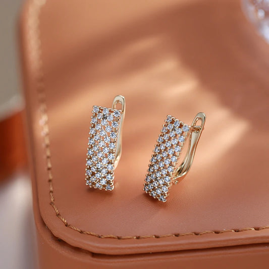 Boucles d'oreilles Pavés de zircons blancs, bijou en plaqué or rose