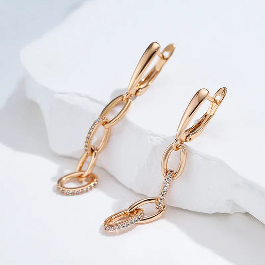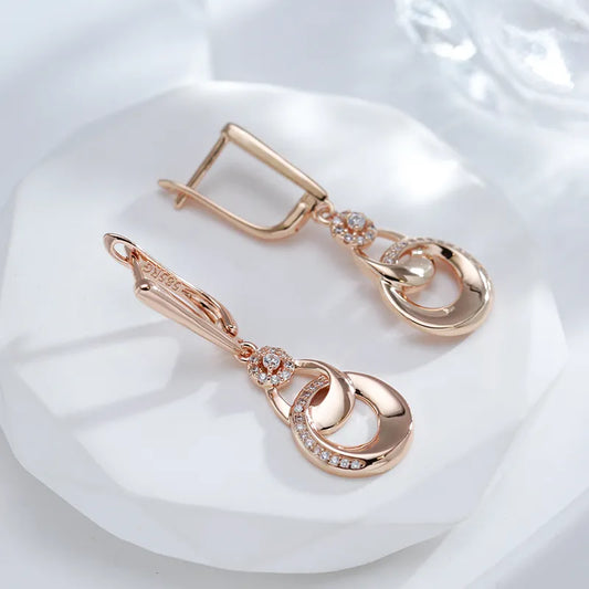Boucles d'oreilles pendantes Anneaux & Zircons, bijou en plaqué or rose