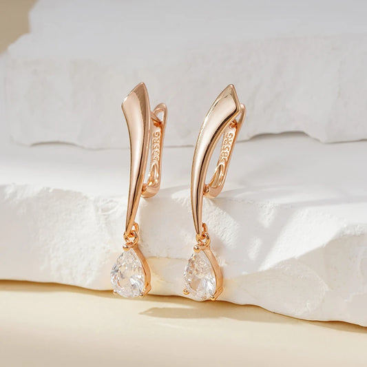 Boucles d'oreilles avec zircons en poire, bijou en plaqué or rose