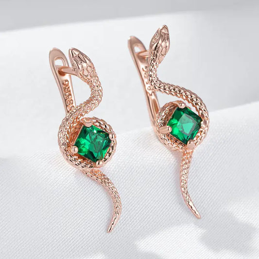 Boucles d'oreilles Serpent, bijou en alliage plaqué or 585 (14 carats) et en zircons naturels