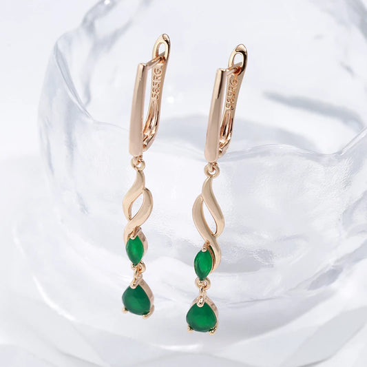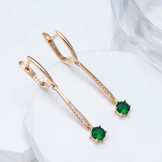 Boucles d'oreilles Zircons vert émeraude, bijou en alliage plaqué or 585 (14 carats), zircons naturels