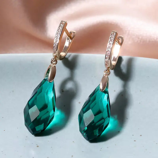 Boucles d'oreilles en pierre de cristal vert foncé, bijou en plaqué or rose, en cristal et en zircons naturels