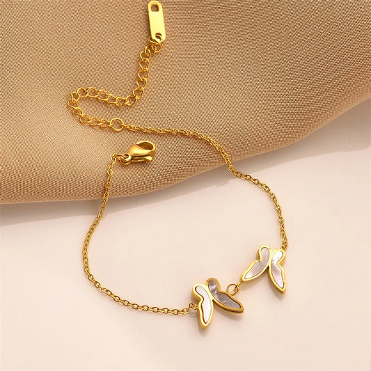 Bracelet Papillons blancs, bijou en acier inoxydable doré 18 carats