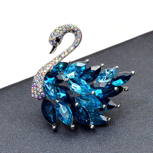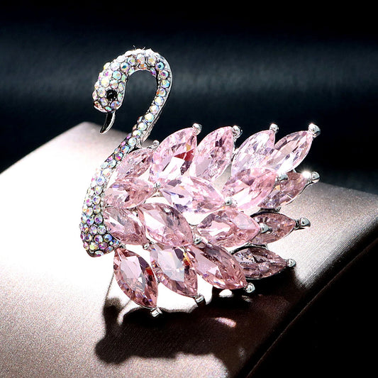 Broche Cygne, bijou en alliage plaqué argent 925 et zircons naturels