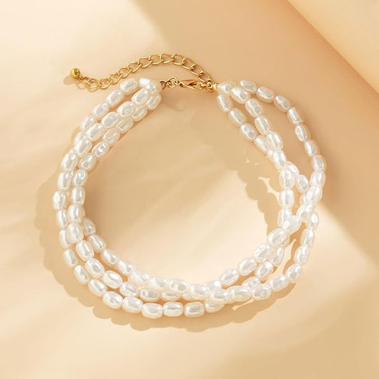 Collier ras-du-cou multirangs et perlé, bijoux en alliage plaqué or et en acrylique