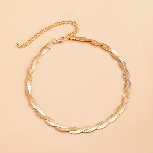 Collier tressé en maille serpent, bijou en alliage plaqué or