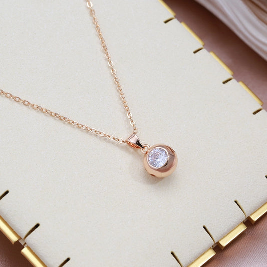 Collier boule zircon blanc, bijou en plaqué or rose et en zircon naturel