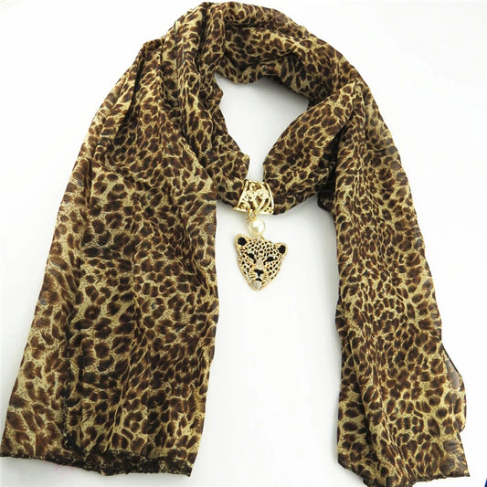 Foulard en soie, bleu marine, avec motifs léopard et chaîne