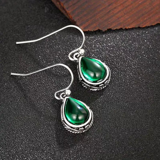 Boucles d'oreilles Goutte pierre verte, bijou en alliage plaqué argent