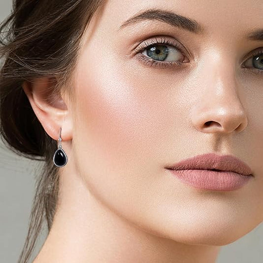 Boucles d'oreilles Goutte pierre noire, bijou en alliage plaqué argent