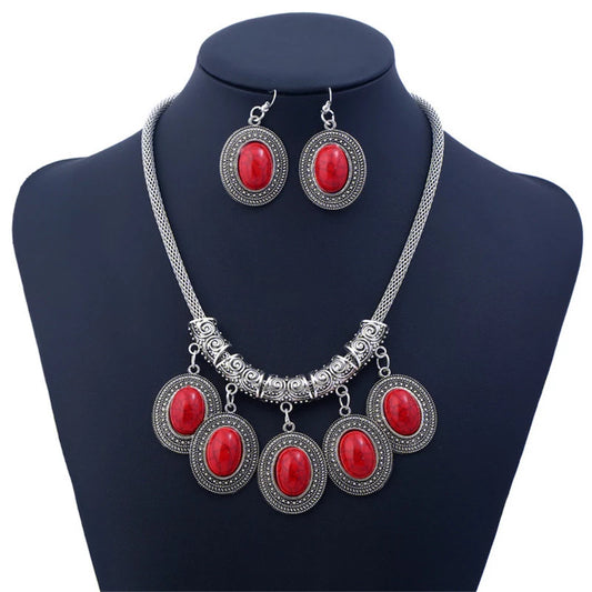 Parure de bijoux bohème Jaspe rouge, bijoux en pierre naturelle
