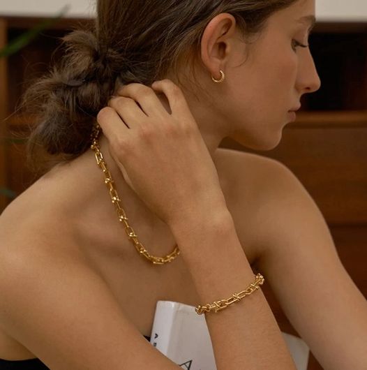 Parure de bijoux Collier + Bracelet Maillons en U, bijoux en acier inoxydable doré 18 carats
