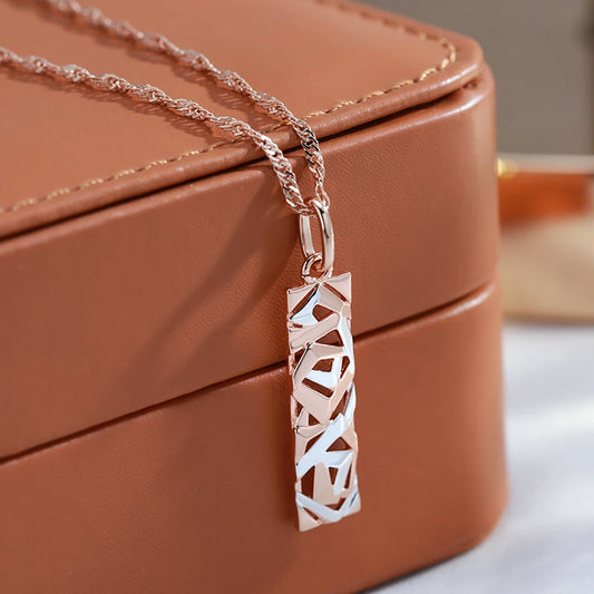 Collier sautoir bicolore avec pendentif fermoir, bijou en acier inoxydable doré et argenté