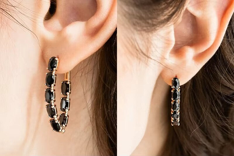 Boucles d'oreilles zircons noirs, bijou en plaqué or et en zircons naturels
